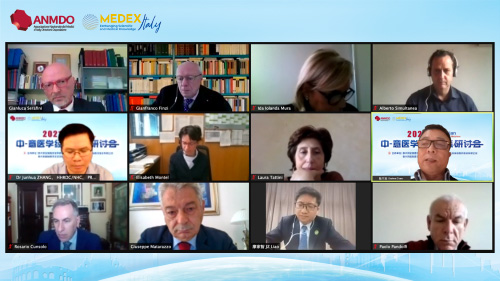 意大利全國醫院領導者協會(ANMDO)主席Gianfranco Finzi、中國衛健委人才交流服務中心黨委書記張俊華為會議致辭。來自意大利全國醫院領導者協會的近100名醫院管理者在線參會,活動同時還以直播的形式向意大利醫療機構開放。