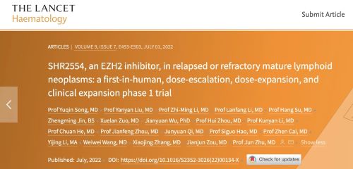 [1]. Song, Y.; Liu, Y.; Li, Z. M.; Li, L.; Su, H.; Jin, Z., et al., SHR2554, an EZH2 inhibitor, in relapsed or refractory mature lymphoid neoplasms: a first-in-human, dose-escalation, dose-expansion, and clinical expansion phase 1 trial. Lancet Haematol 2022, 9, e493-e503