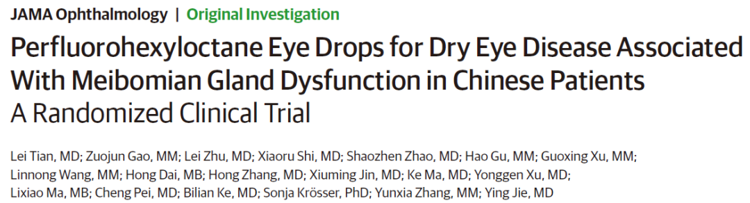 近日,由首都醫(yī)科大學附屬北京同仁醫(yī)院接英教授牽頭的多中心、隨機、雙盲、對照Ⅲ期臨床研究(研究編號SHR8058-301)結(jié)果在國際知名醫(yī)學期刊《美國醫(yī)學會雜志》(JAMA)眼科子刊(JAMA ophthalmology IF:7.389)在線發(fā)表。該研究旨在評價SHR8058滴眼液在中國瞼板腺功能障礙(MGD)相關(guān)干眼癥患者中的療效和安全性。研究結(jié)果顯示,SHR8058滴眼液有效改善MGD相關(guān)干眼病的癥狀和體征,起效迅速,有著良好的耐受性和安全性,有望為患者帶來新的治療選擇。