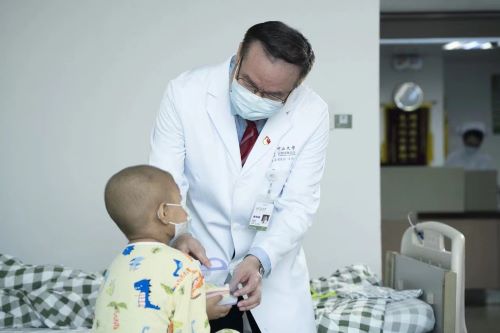而近年來,麥海強也接觸到了越來越多的兒童鼻咽癌病例,與成年人的分布不同,他們更多來自北方。“兒童鼻咽癌的情況差別很大,兒童的發病年齡聚集在14-16歲,且因為北方鼻咽癌病例少見,存在誤診的情況,很多小患者確診時已經非常晚期了。”面對危在旦夕的孩子,麥海強在兒童鼻咽癌治療方案上下了很大的功夫。相比成年人檢查時使用的前鼻鏡和鼻咽鏡,他用不適感較輕的耳內鏡為小患者做檢查。治療方面,他將孩子的成長發育及后續的生活質量作為主要考量,調整放化療的使用劑量。“患者的治療反應是參考標準,有的孩子對化療敏感,需要根據他們不同的特點,動態地調整化療方案。”