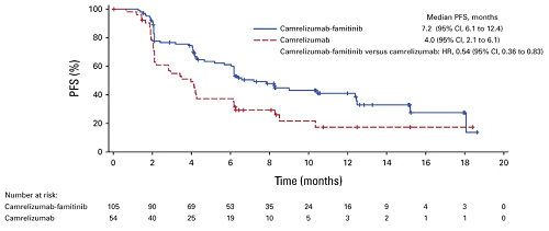 基于該研究的積極結(jié)果,目前正在開展一項(xiàng)多中心、隨機(jī)對(duì)照的III期臨床試驗(yàn)(NCT04906993),旨在進(jìn)一步評(píng)估卡瑞利珠單抗聯(lián)合法米替尼作為一線治療方案與標(biāo)準(zhǔn)含鉑化療的療效及安全性差異。