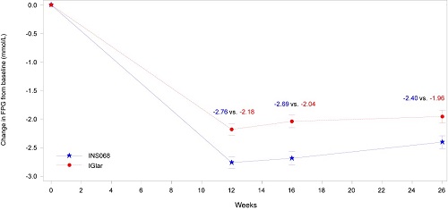圖3:INS068-301次要終點:26周時FPG較基線的變化